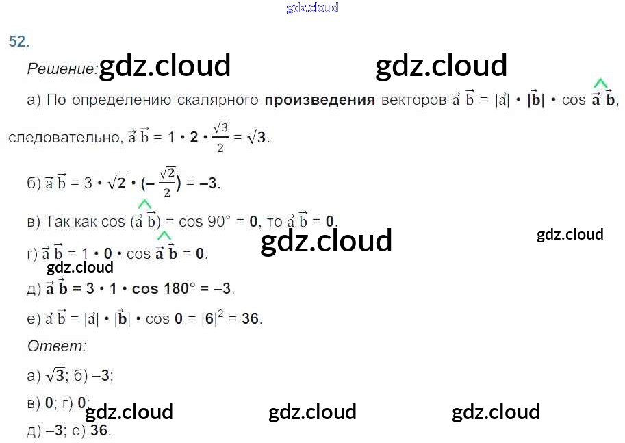 Ответ на задание 52 Рабочая тетрадь Геометрия за 9 (девятый) класс Атанасян, Бутузов, Глазков, Юдина 2014