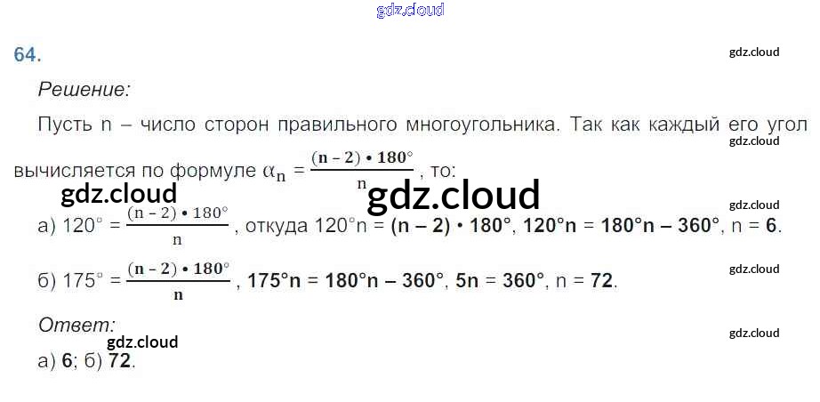 Ответ на задание 64 Рабочая тетрадь Геометрия за 9 (девятый) класс Атанасян, Бутузов, Глазков, Юдина 2014