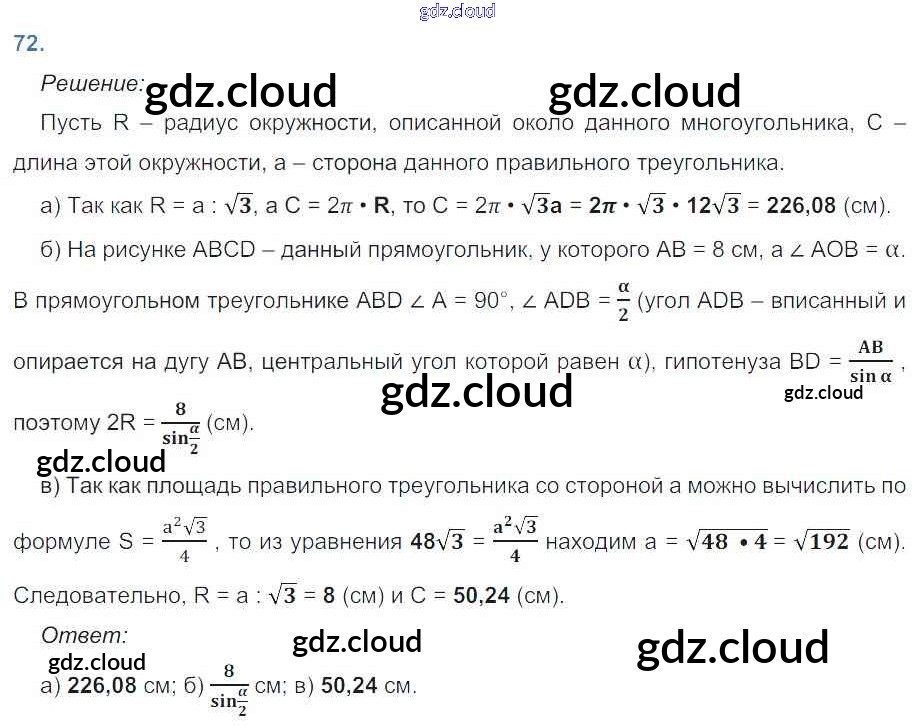 Ответ на задание 72 Рабочая тетрадь Геометрия за 9 (девятый) класс Атанасян, Бутузов, Глазков, Юдина 2014