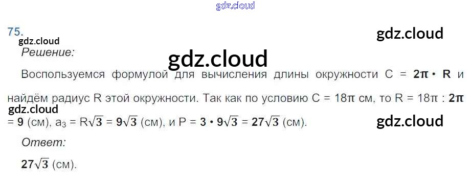 Ответ на задание 75 Рабочая тетрадь Геометрия за 9 (девятый) класс Атанасян, Бутузов, Глазков, Юдина 2014