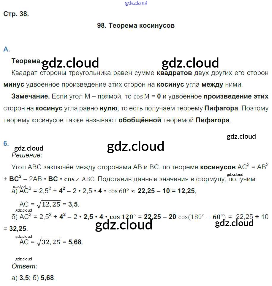 Ответ на задание 38 Рабочая тетрадь Геометрия за 9 (девятый) класс Глазков, Камаев УМК 2013 ФГОС онлайн и без номера телефона.