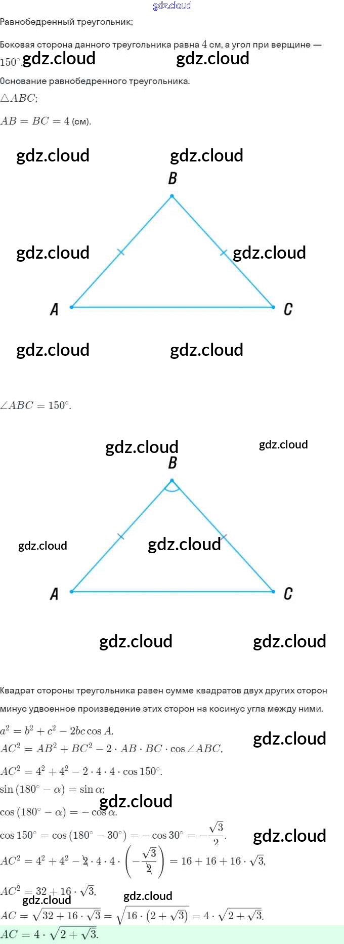 Ответы. §2. Теорема косинусов по Геометрии 9 класс Рабочая тетрадь Мерзляк Алгоритм успеха Часть 1, 2 Вентана-граф