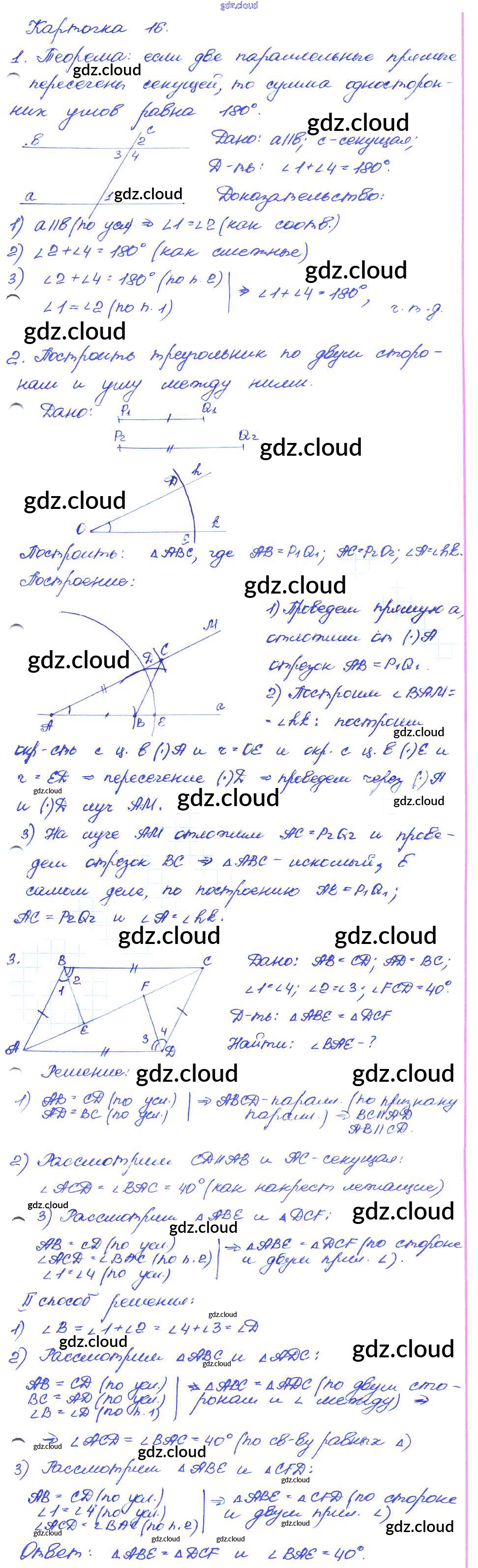 Итоговый зачёт Ответы к 7 класс по Геометрии 7, 8, 9 класс Самостоятельные и контрольные работы Иченская Просвещение