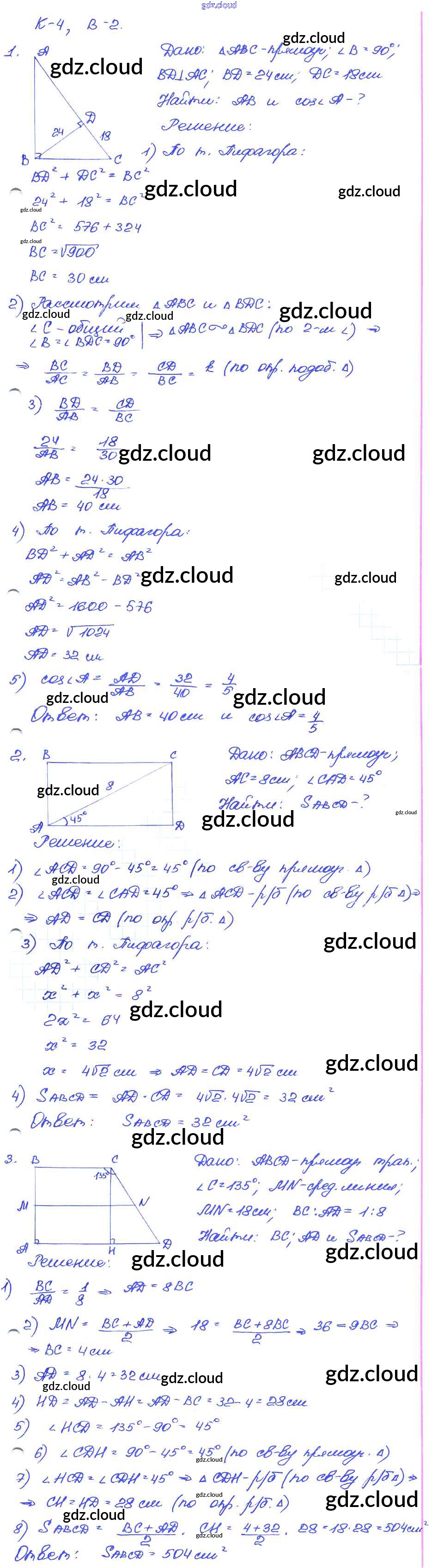 КР-4. Варианты Контрольные работы по Геометрии 7, 8, 9 класс Самостоятельные и контрольные работы Иченская Просвещение