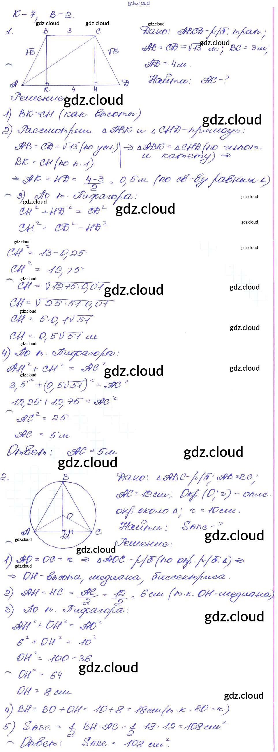 КР-7. Варианты Контрольные работы по Геометрии 7, 8, 9 класс Самостоятельные и контрольные работы Иченская Просвещение