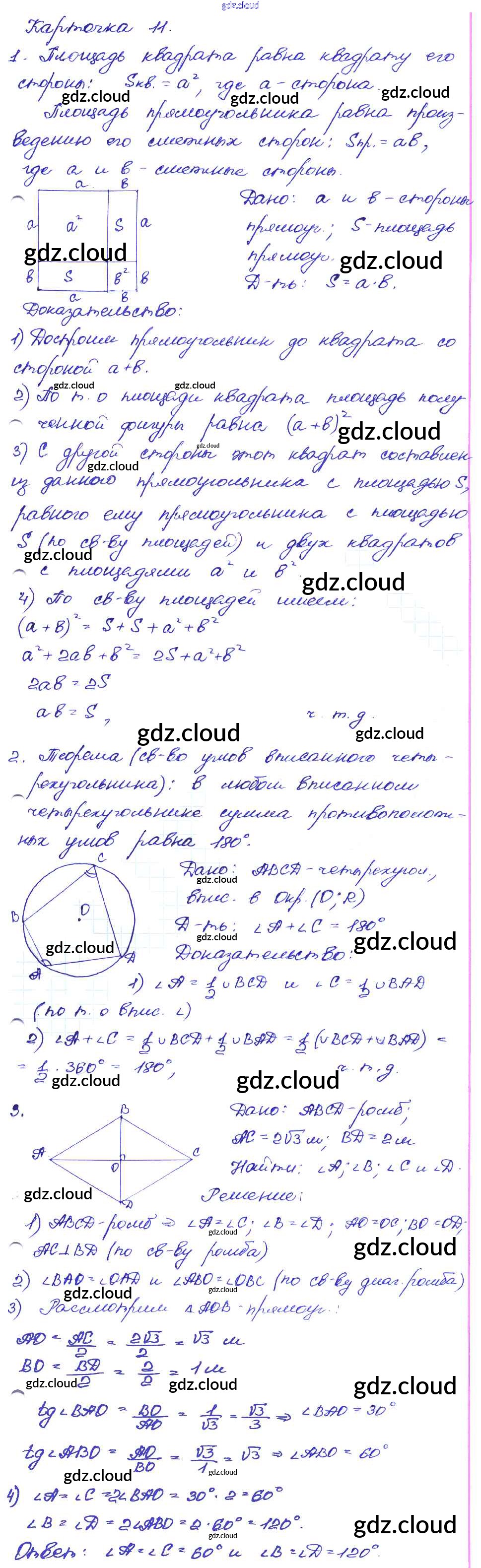 Ответ на задание 11 Самостоятельные и контрольные работы Геометрия за 7, 8, 9 (седьмой, восьмой, девятый) класс Иченская 2017