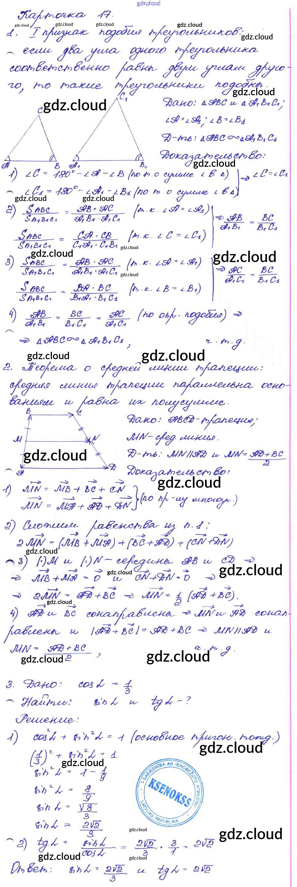 Ответ на задание 17 Самостоятельные и контрольные работы Геометрия за 7, 8, 9 (седьмой, восьмой, девятый) класс Иченская 2017