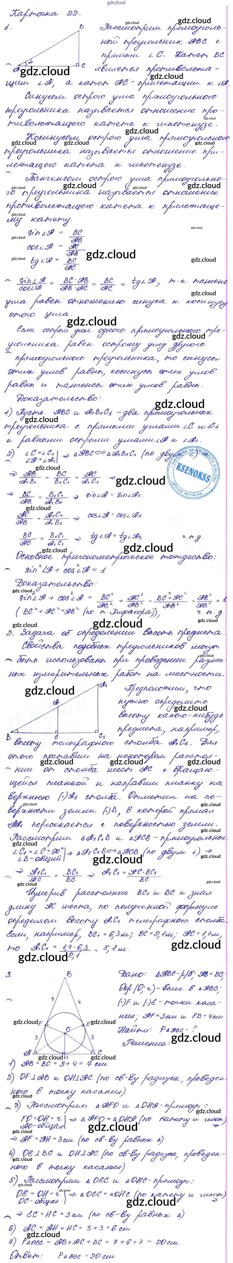 Ответ на задание 22 Самостоятельные и контрольные работы Геометрия за 7, 8, 9 (седьмой, восьмой, девятый) класс Иченская 2017