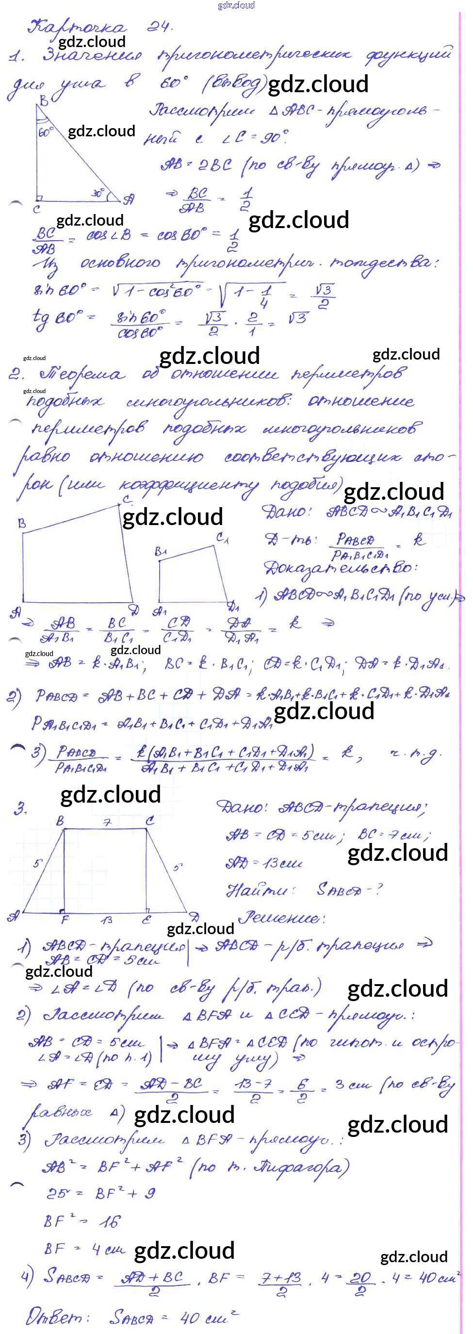 Ответ на задание 24 Самостоятельные и контрольные работы Геометрия за 7, 8, 9 (седьмой, восьмой, девятый) класс Иченская 2017