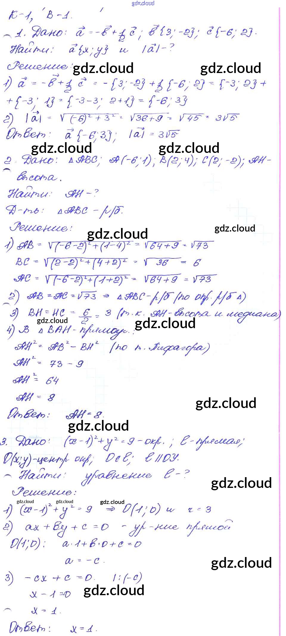 Ответ на задание 1 Самостоятельные и контрольные работы Геометрия за 7, 8, 9 (седьмой, восьмой, девятый) класс Иченская 2017