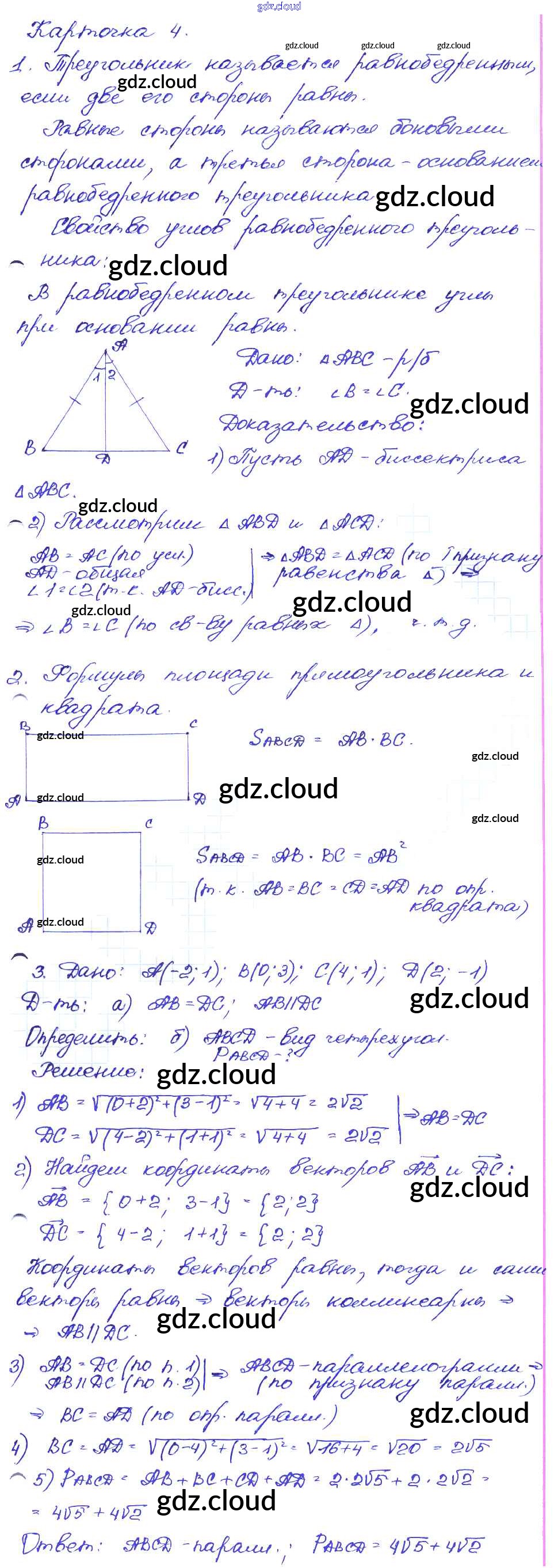 Ответ на задание 4 Самостоятельные и контрольные работы Геометрия за 7, 8, 9 (седьмой, восьмой, девятый) класс Иченская 2017