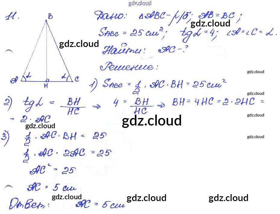 Ответ на задание 11 Самостоятельные и контрольные работы Геометрия за 7, 8, 9 (седьмой, восьмой, девятый) класс Иченская 2017