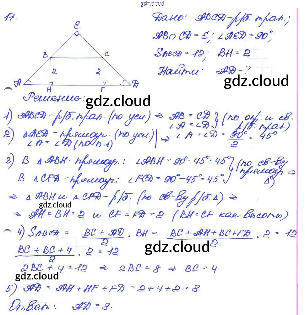 Ответ на задание 17 Самостоятельные и контрольные работы Геометрия за 7, 8, 9 (седьмой, восьмой, девятый) класс Иченская 2017