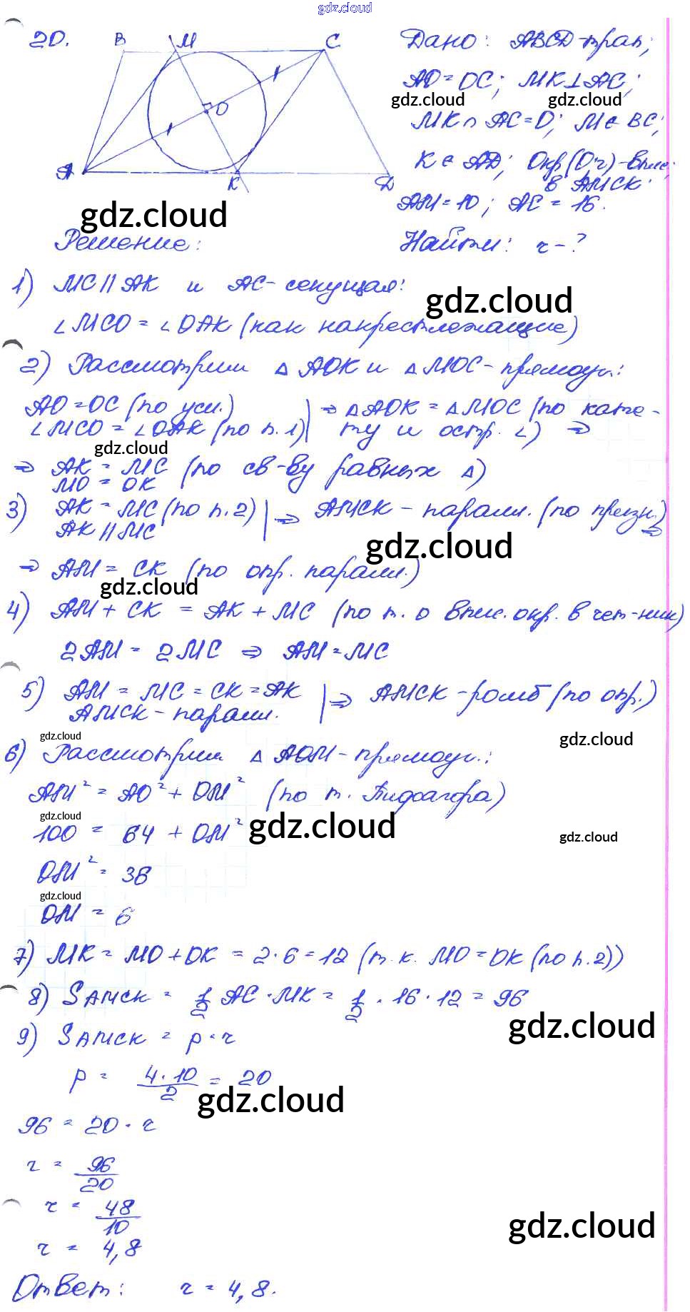 Ответ на задание 20 Самостоятельные и контрольные работы Геометрия за 7, 8, 9 (седьмой, восьмой, девятый) класс Иченская 2017