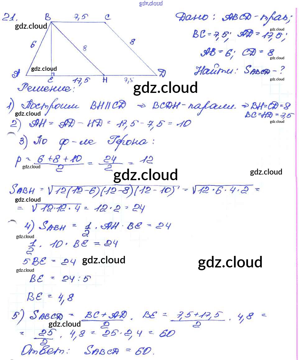 Ответ на задание 21 Самостоятельные и контрольные работы Геометрия за 7, 8, 9 (седьмой, восьмой, девятый) класс Иченская 2017
