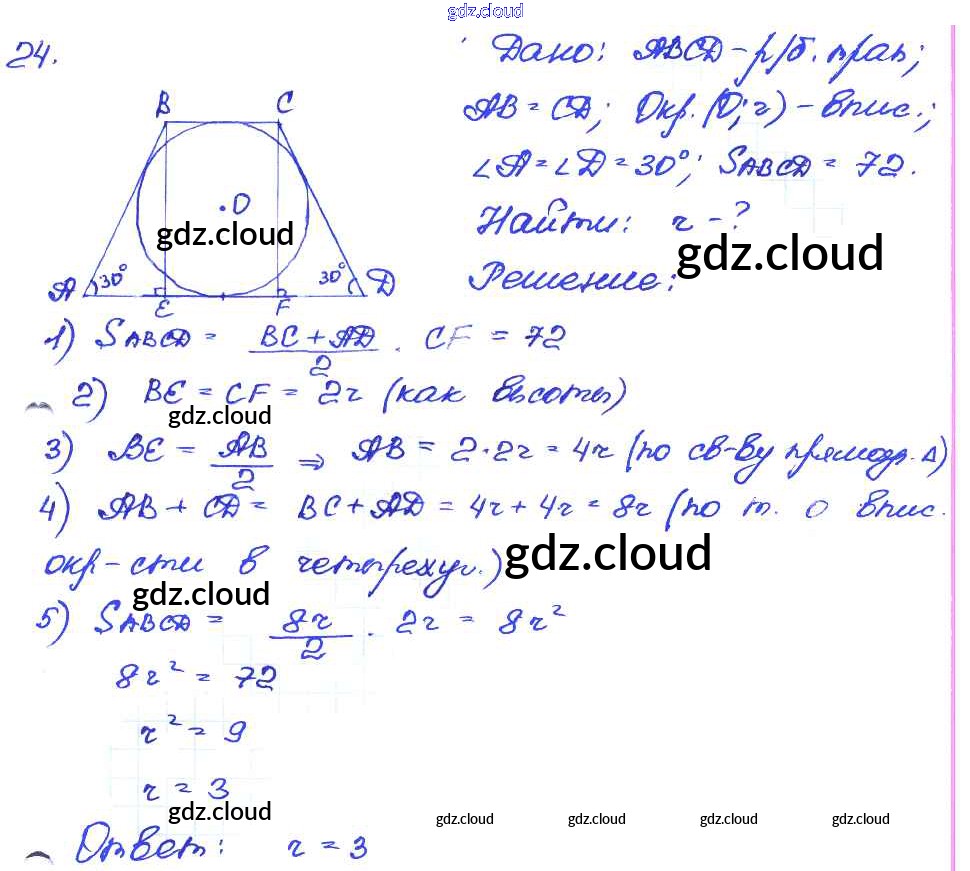Ответ на задание 24 Самостоятельные и контрольные работы Геометрия за 7, 8, 9 (седьмой, восьмой, девятый) класс Иченская 2017
