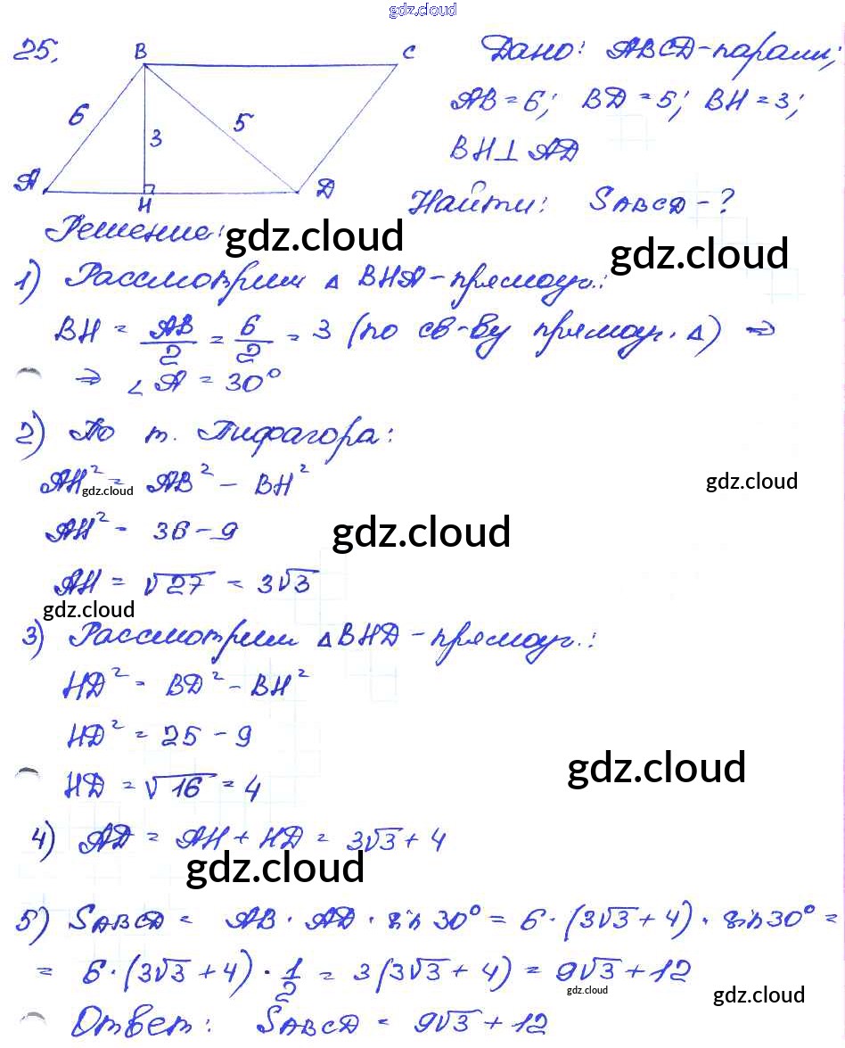 Ответ на задание 25 Самостоятельные и контрольные работы Геометрия за 7, 8, 9 (седьмой, восьмой, девятый) класс Иченская 2017