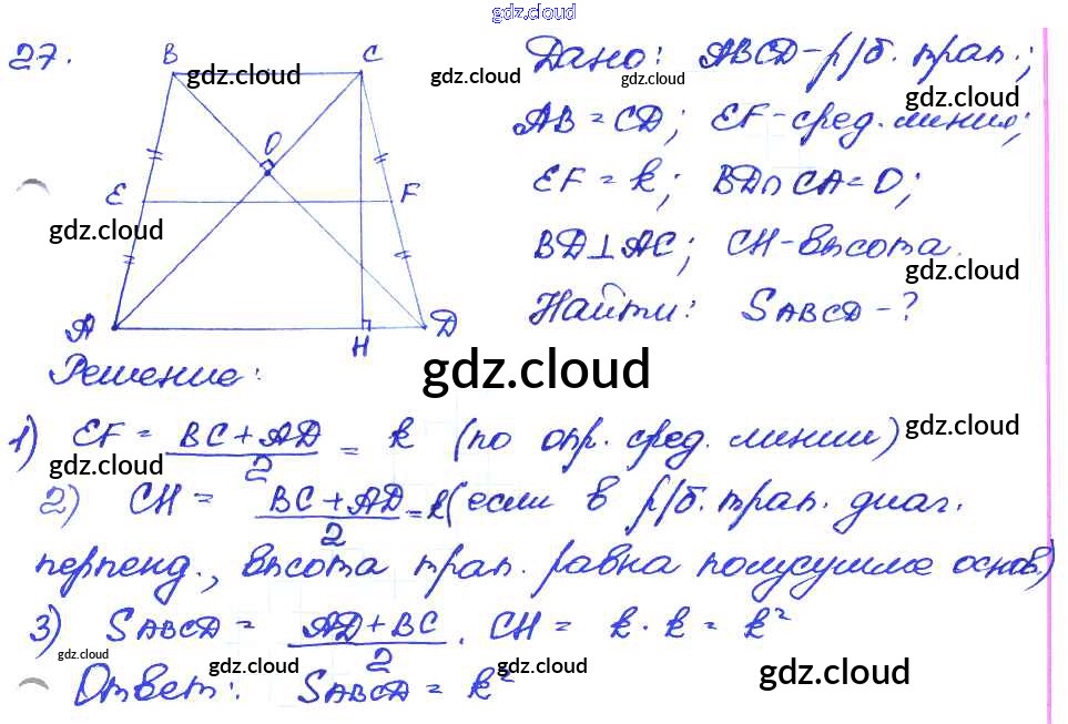 Ответ на задание 27 Самостоятельные и контрольные работы Геометрия за 7, 8, 9 (седьмой, восьмой, девятый) класс Иченская 2017