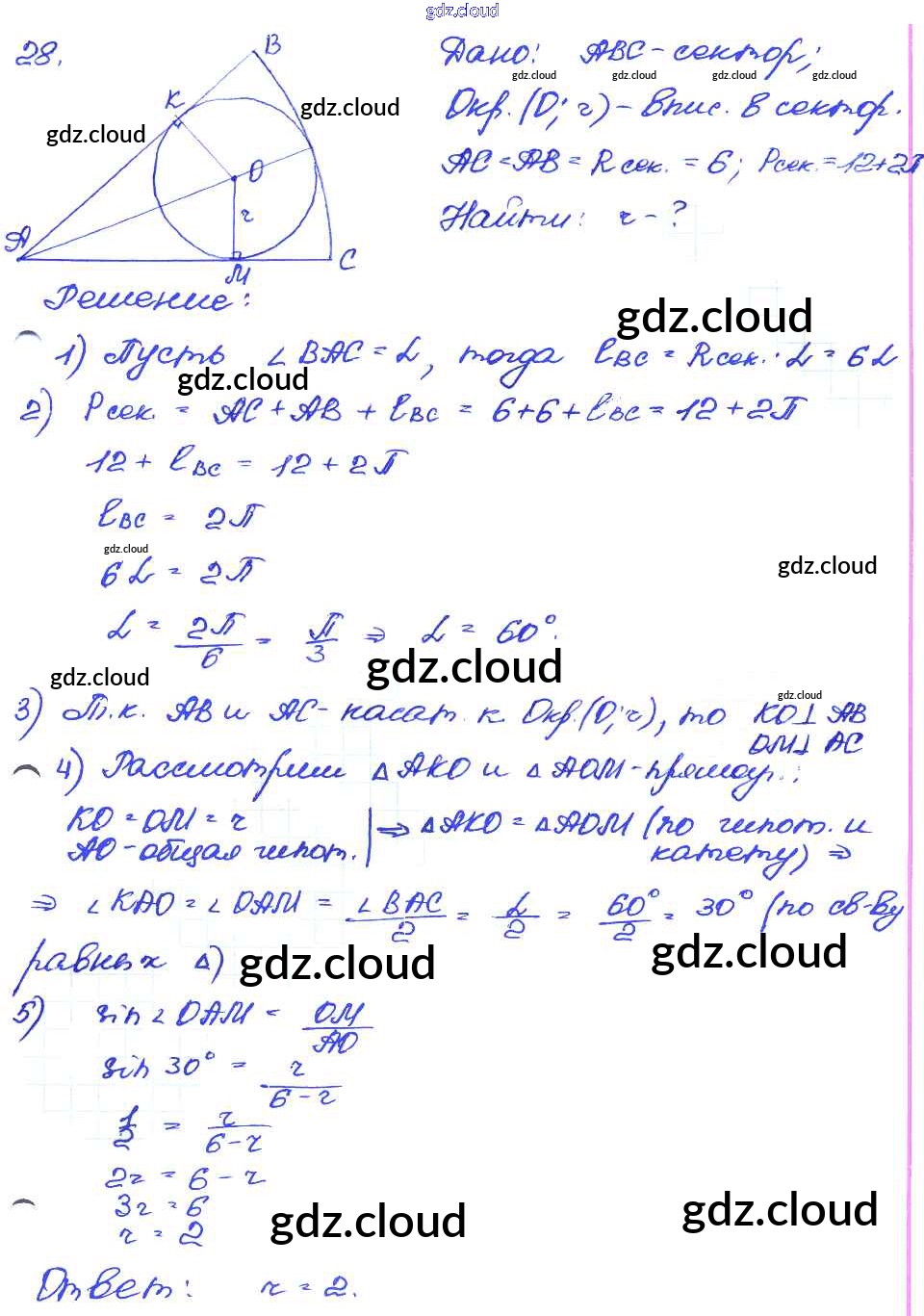 Ответ на задание 28 Самостоятельные и контрольные работы Геометрия за 7, 8, 9 (седьмой, восьмой, девятый) класс Иченская 2017