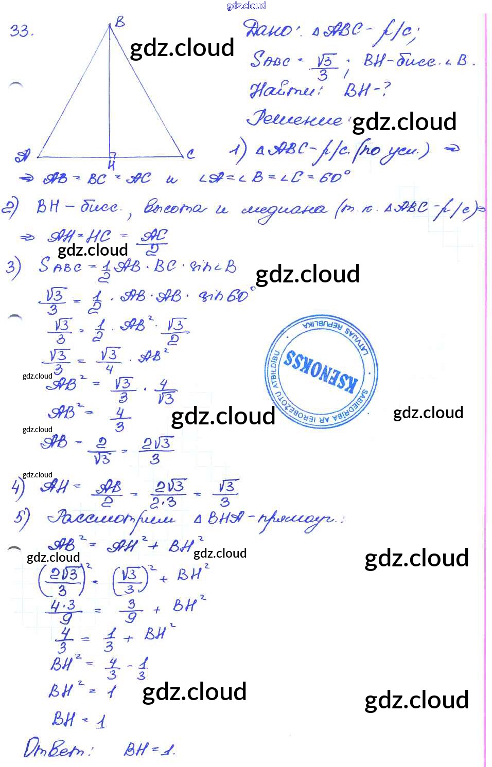 Ответ на задание 33 Самостоятельные и контрольные работы Геометрия за 7, 8, 9 (седьмой, восьмой, девятый) класс Иченская 2017