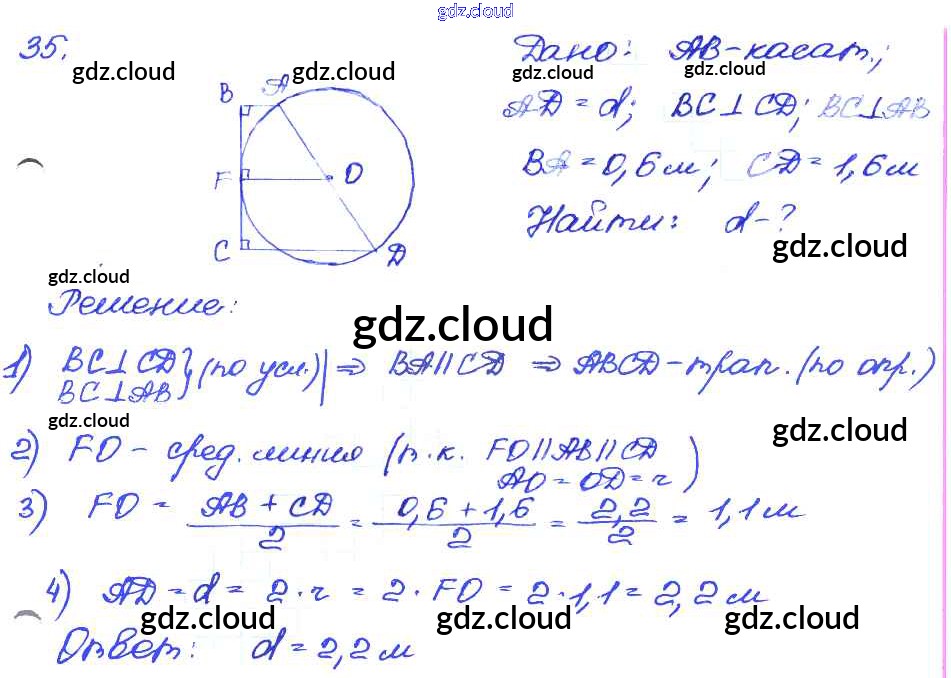 Ответ на задание 35 Самостоятельные и контрольные работы Геометрия за 7, 8, 9 (седьмой, восьмой, девятый) класс Иченская 2017