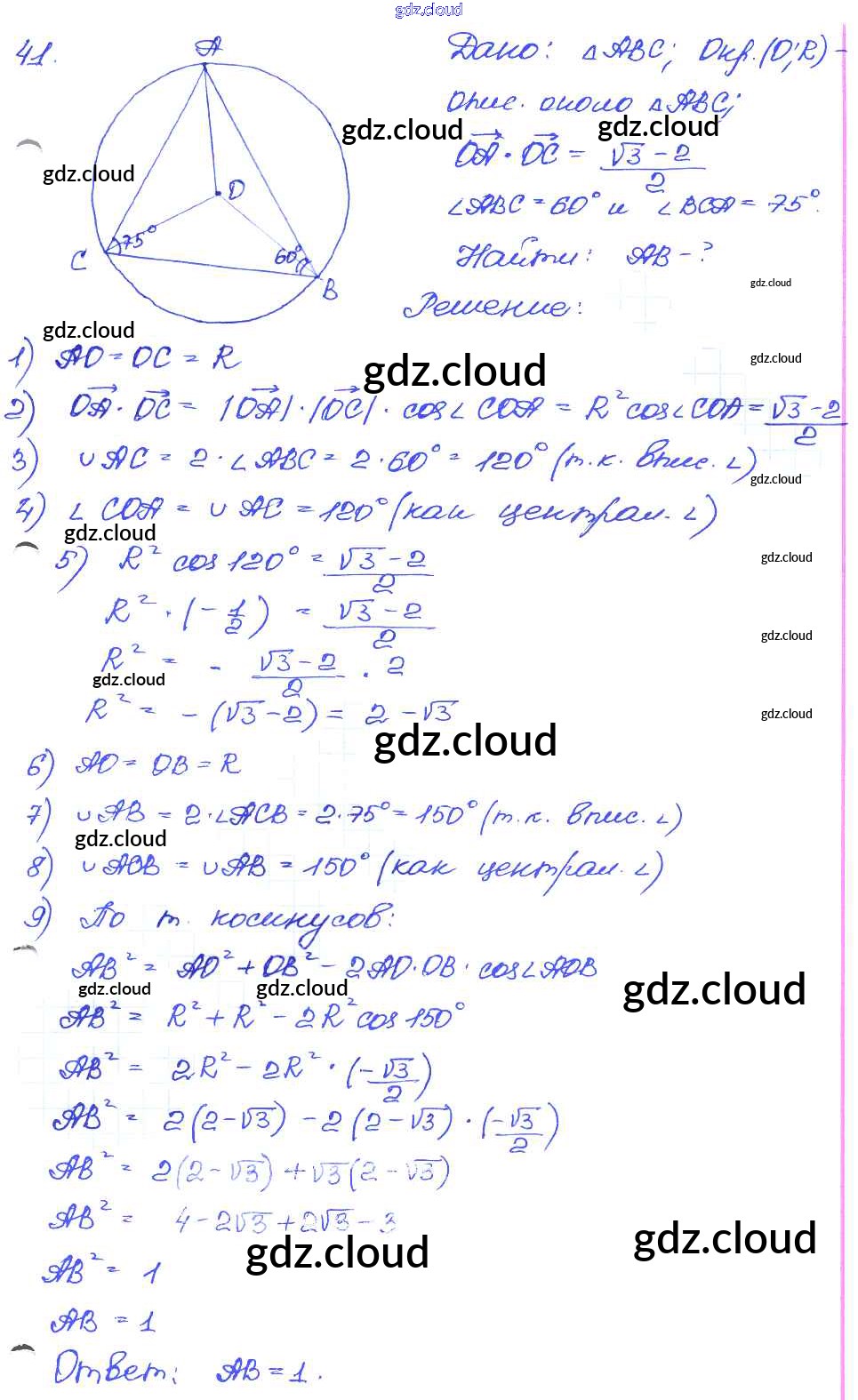 Ответ на задание 41 Самостоятельные и контрольные работы Геометрия за 7, 8, 9 (седьмой, восьмой, девятый) класс Иченская 2017