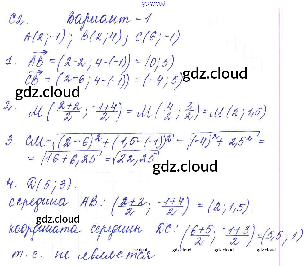 самостоятельные работы / к учебнику Атанасяна / ср-2. вариант / 1