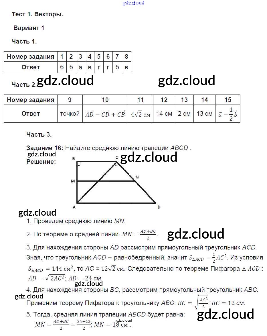 Ответ на задание 1 Тесты Геометрия за 9 (девятый) класс Фарков УМК 2016 ФГОС онлайн и без номера телефона.