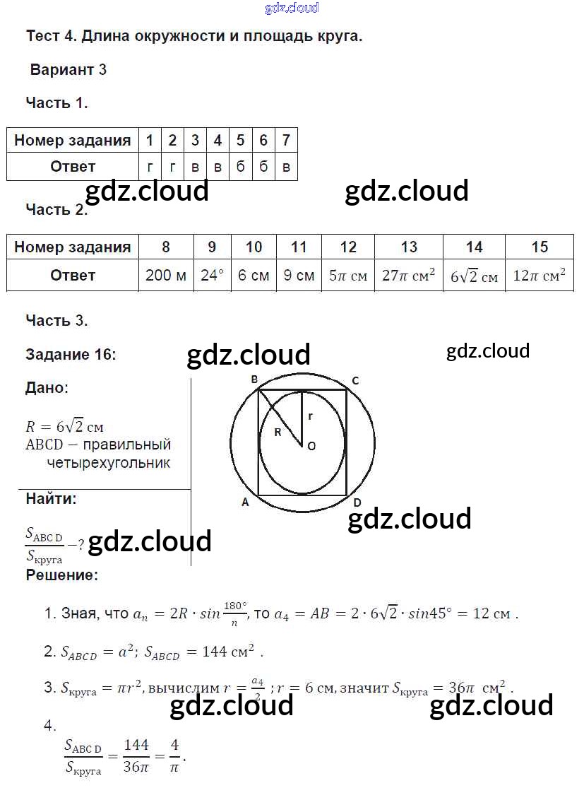 Ответ на задание 3 Тесты Геометрия за 9 (девятый) класс Фарков УМК 2016 ФГОС онлайн и без номера телефона.