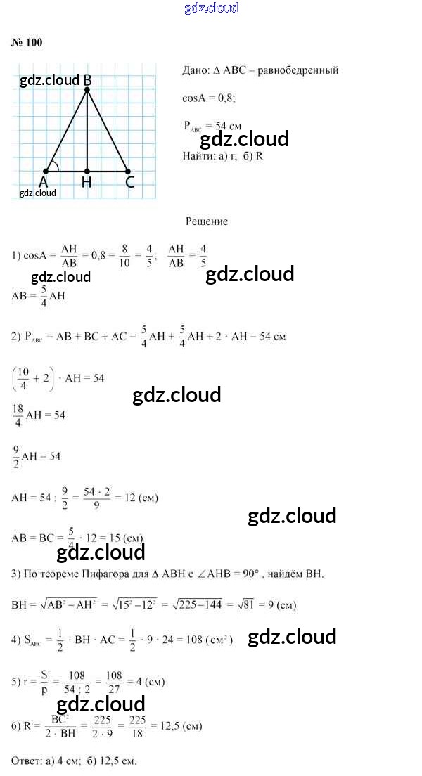 Ответ на задание 100 Учебник Геометрия за 9 (девятый) класс Казаков 2019 онлайн и без номера телефона.