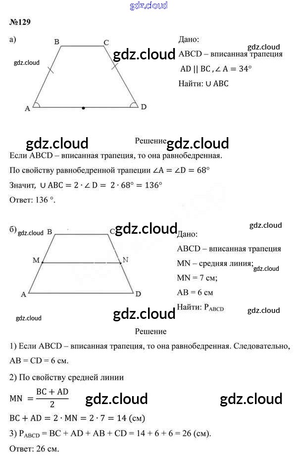 Ответ на задание 129 Учебник Геометрия за 9 (девятый) класс Казаков 2019 онлайн и без номера телефона.