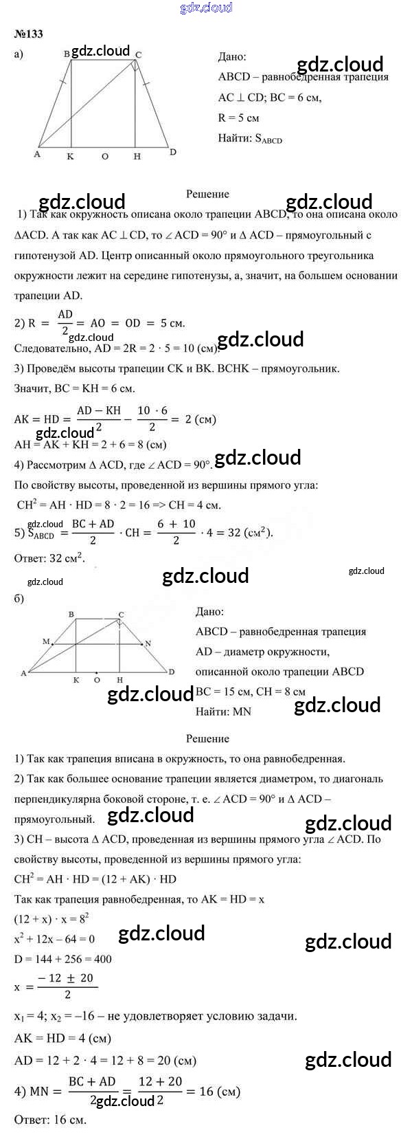 Ответ на задание 133 Учебник Геометрия за 9 (девятый) класс Казаков 2019 онлайн и без номера телефона.