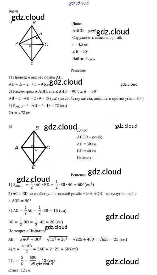 Ответ на задание 141 Учебник Геометрия за 9 (девятый) класс Казаков 2019 онлайн и без номера телефона.