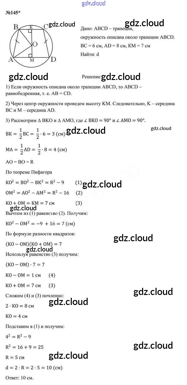 Ответ на задание 145 Учебник Геометрия за 9 (девятый) класс Казаков 2019 онлайн и без номера телефона.