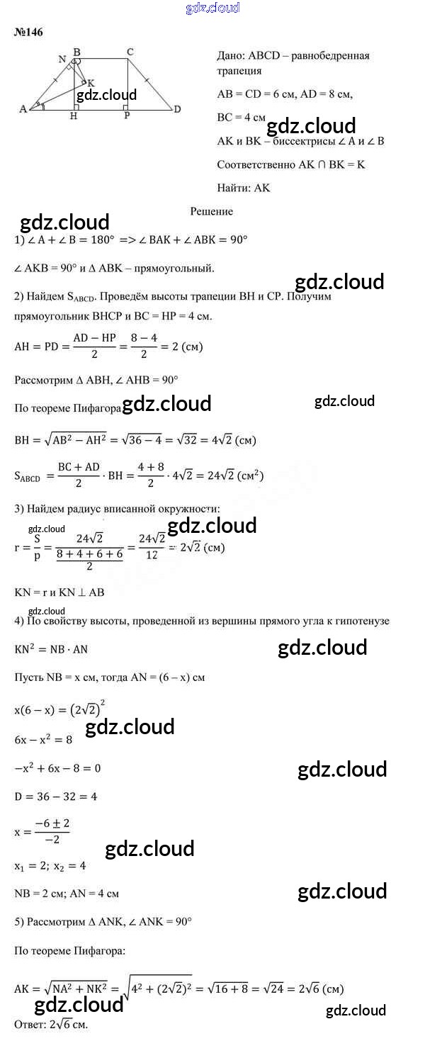 Ответ на задание 146 Учебник Геометрия за 9 (девятый) класс Казаков 2019 онлайн и без номера телефона.