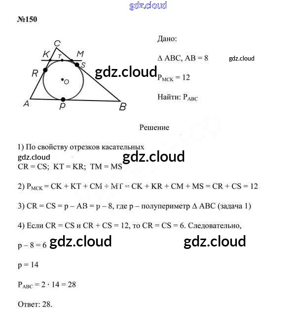 Ответ на задание 150 Учебник Геометрия за 9 (девятый) класс Казаков 2019 онлайн и без номера телефона.