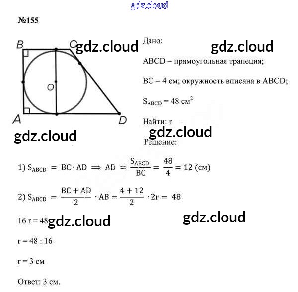 Ответ на задание 155 Учебник Геометрия за 9 (девятый) класс Казаков 2019 онлайн и без номера телефона.
