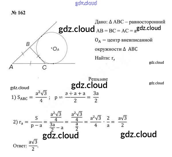 Ответ на задание 162 Учебник Геометрия за 9 (девятый) класс Казаков 2019 онлайн и без номера телефона.