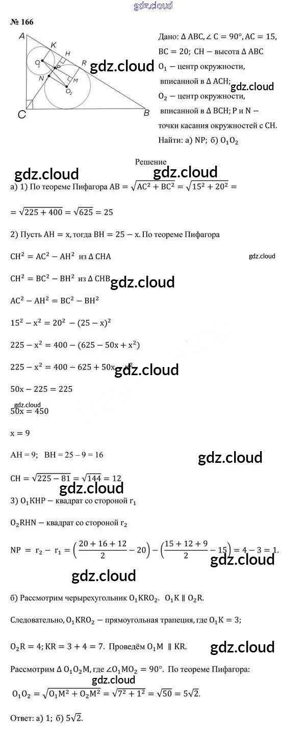 Ответ на задание 166 Учебник Геометрия за 9 (девятый) класс Казаков 2019 онлайн и без номера телефона.