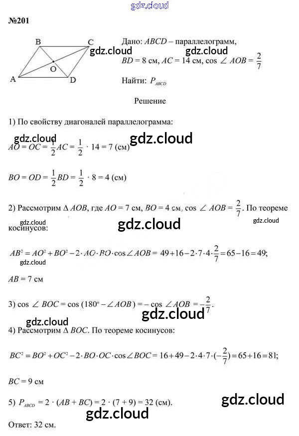 Ответ на задание 201 Учебник Геометрия за 9 (девятый) класс Казаков 2019 онлайн и без номера телефона.