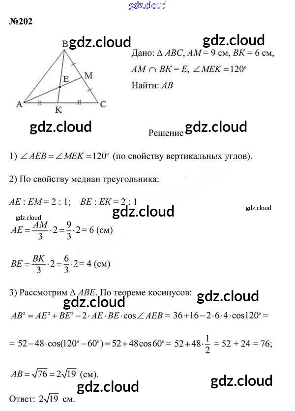 Ответ на задание 202 Учебник Геометрия за 9 (девятый) класс Казаков 2019 онлайн и без номера телефона.