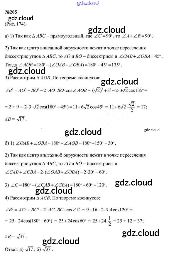 Ответ на задание 205 Учебник Геометрия за 9 (девятый) класс Казаков 2019 онлайн и без номера телефона.