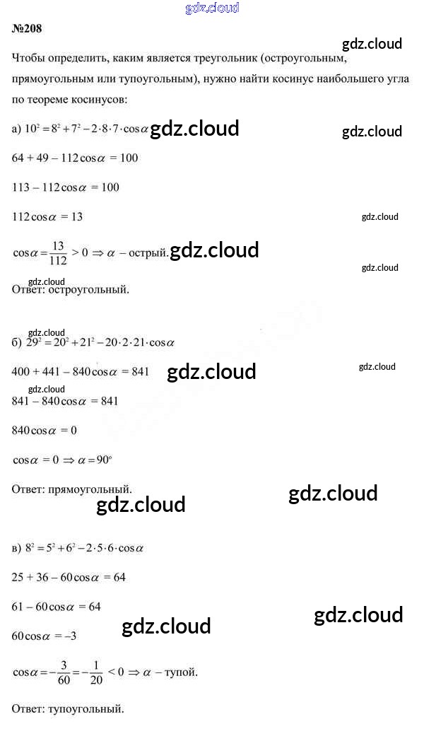 Ответ на задание 208 Учебник Геометрия за 9 (девятый) класс Казаков 2019 онлайн и без номера телефона.