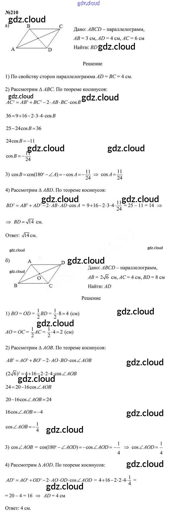 Ответ на задание 210 Учебник Геометрия за 9 (девятый) класс Казаков 2019 онлайн и без номера телефона.