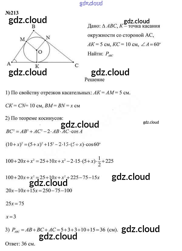 Ответ на задание 213 Учебник Геометрия за 9 (девятый) класс Казаков 2019 онлайн и без номера телефона.