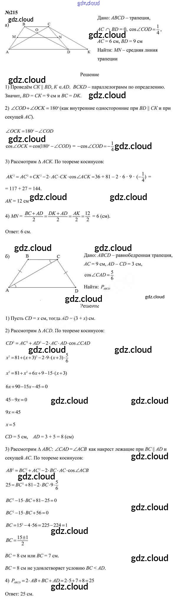 Ответ на задание 215 Учебник Геометрия за 9 (девятый) класс Казаков 2019 онлайн и без номера телефона.