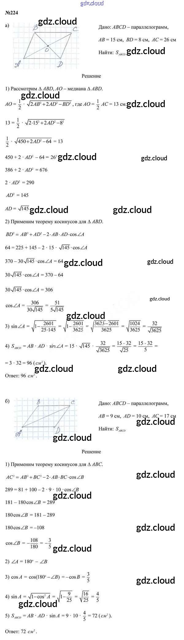 Ответ на задание 224 Учебник Геометрия за 9 (девятый) класс Казаков 2019 онлайн и без номера телефона.