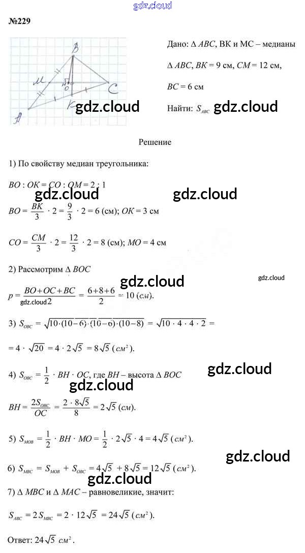 Ответ на задание 229 Учебник Геометрия за 9 (девятый) класс Казаков 2019 онлайн и без номера телефона.