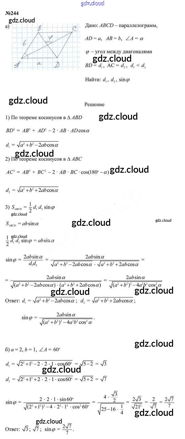 Ответ на задание 244 Учебник Геометрия за 9 (девятый) класс Казаков 2019 онлайн и без номера телефона.