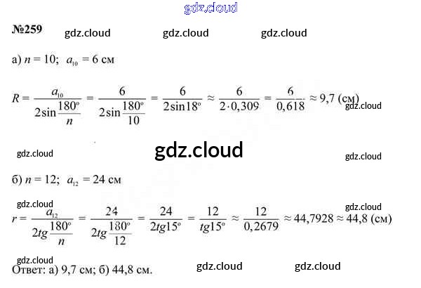 Ответ на задание 259 Учебник Геометрия за 9 (девятый) класс Казаков 2019 онлайн и без номера телефона.